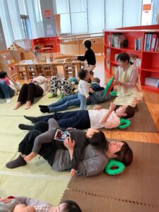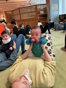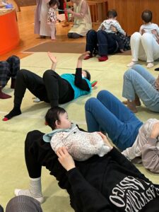 赤ちゃんたちも、ままのおひざに乗ってユラユラしたり、ごろーんとマットに寝転がったり、とっても気持ちよさそうでした🌟