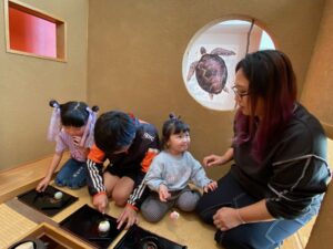 11月のおやこお茶会のご報告です。5組16名の皆さんが参加してくれました👦👧初めて参加してくれたご家族や、お茶会が大好きで毎月参加してくれているご家族も。パパママがお抹茶や和菓子をいただいている時は、スタッフが抱っこしますので赤ちゃんも大歓迎です💕