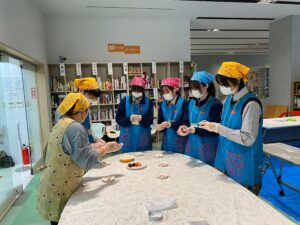 こどもはっちが担当しているいちご大福作り体験会で、いらっしゃったお客様にいちご大福の作り方を教えるお手伝いをしていただきました。