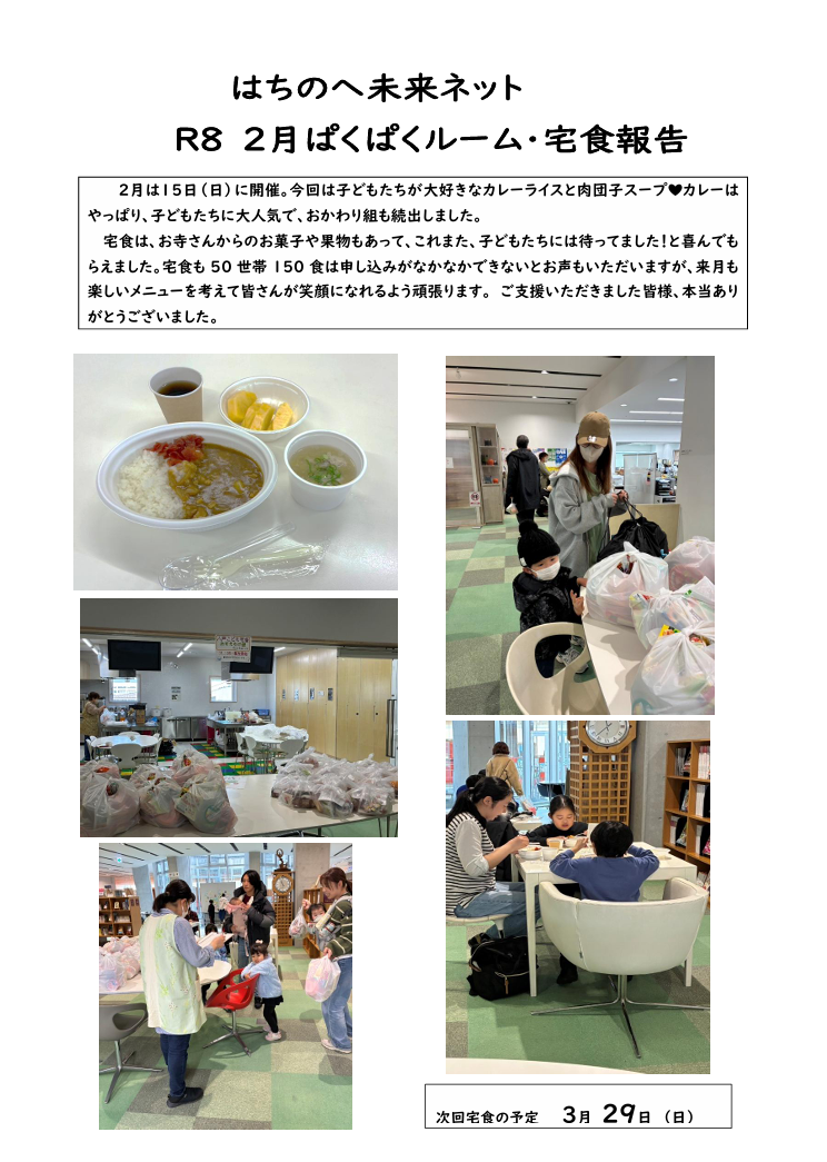 3. R8年2月ぱくぱくルーム・宅食おすそ分け便報告