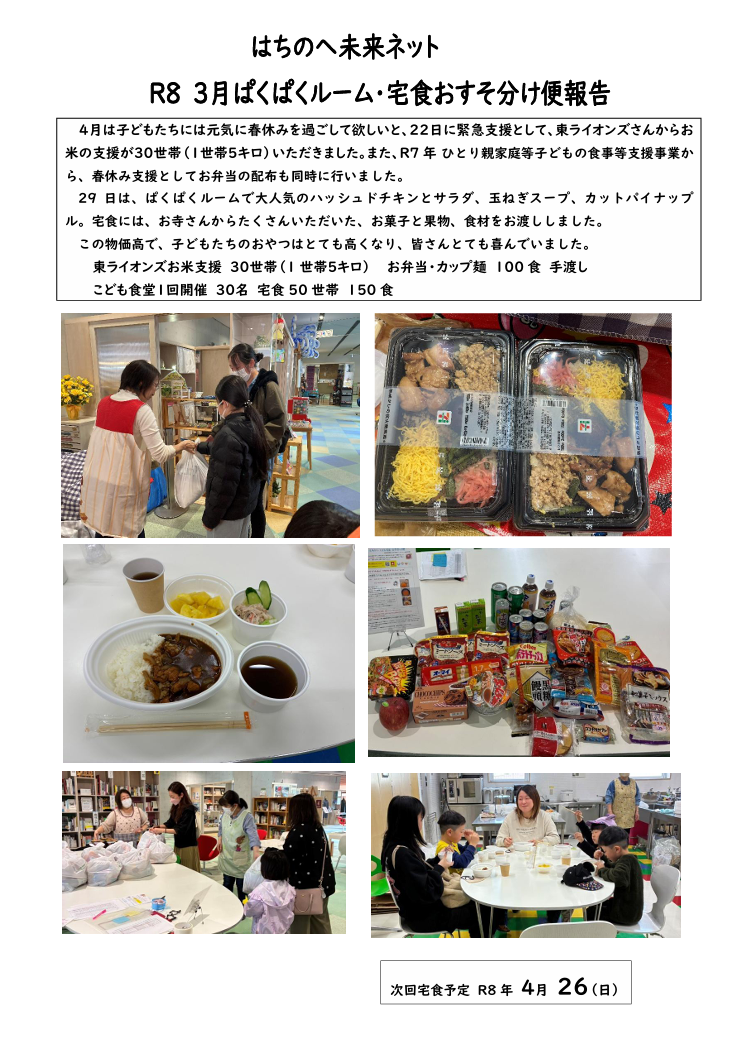 R8年3月ぱくぱくルーム・宅食おすそ分け便報告