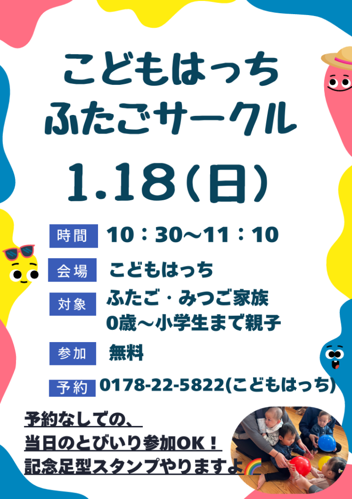 ふたごちゃん・みつごちゃん情報交換サークルです🎵楽しいお話や、ふたごちゃん・みつごちゃんゲームをいっしょに楽しみましょう🌈記念に『足型スタンプ』プレゼント🎁集合写真もとりますよ📷✨